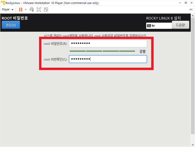 ๋ง์ง๋ง์ผ๋ก ๋ฃจํธ ๋น๋ฐ๋ฒํธ๋ฅผ ์ค์ ํด์ค์๋ค. ์ํธ ์ค์ ์ ์๋ฃํด์ผ ์ค์น ์์์ด ๊ฐ๋ฅํฉ๋๋ค.