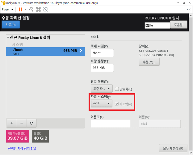 ํ์ผ ์์คํ ์ EXT4๋ก ๋ณ๊ฒฝํด์ฃผ์ธ์.