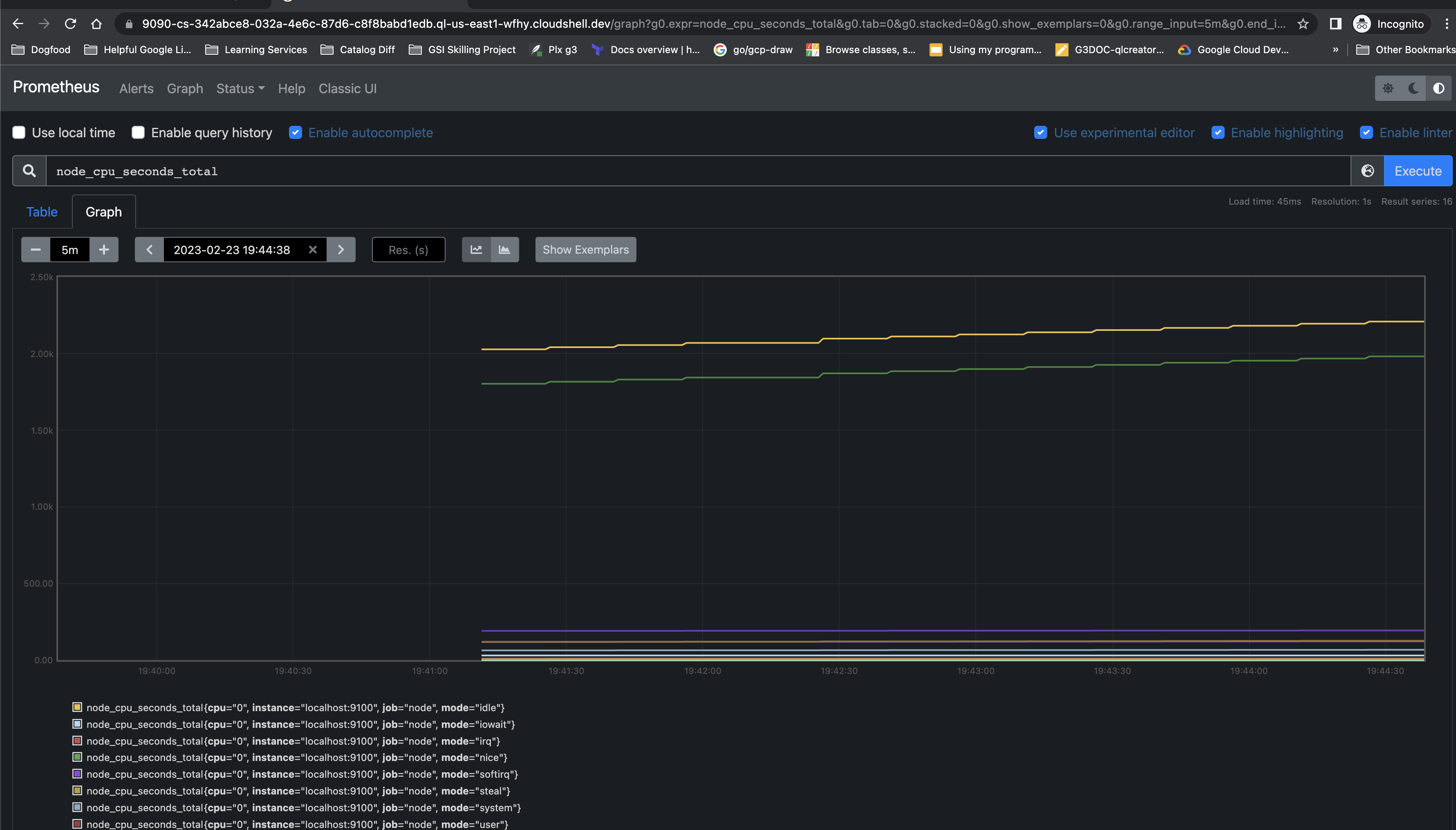 - Stop the running prometheus binary in the 1st tab of Cloud Shell and have a new config file which will take the metrics from node exporter: